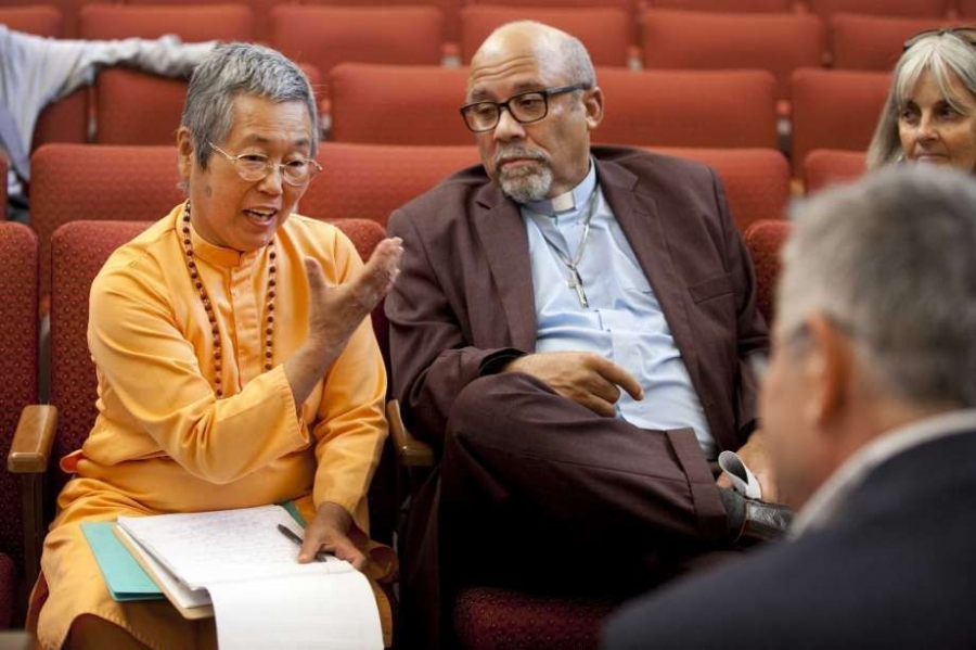 After the service, Wilson huddled with Dayananda and Susan Liebl, another Yogaville resident. The three would travel the next day to North Carolina for an environmental justice summit with the Rev. William Barber II, in hopes of getting him to journey to Union Hill to rally support.